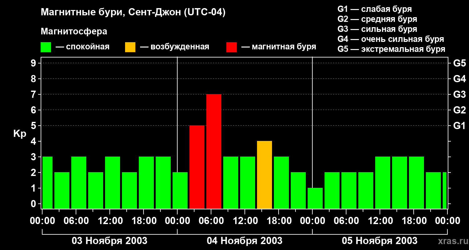Магнитные бури в Сент-Джоне — 5 ноября 2003 года