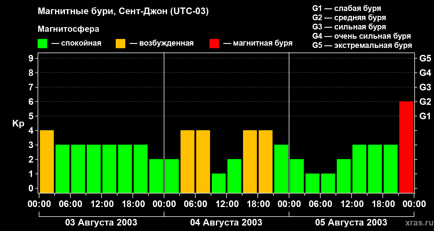 Магнитные бури в Сент-Джоне — 5 августа 2003 года