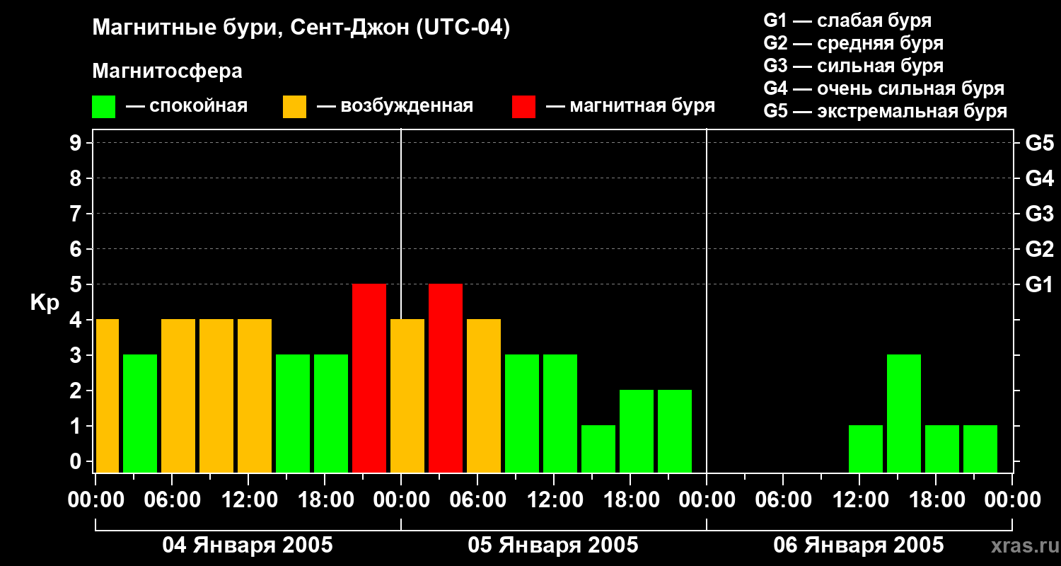 Магнитные бури в Сент-Джоне 6 января 2005 года