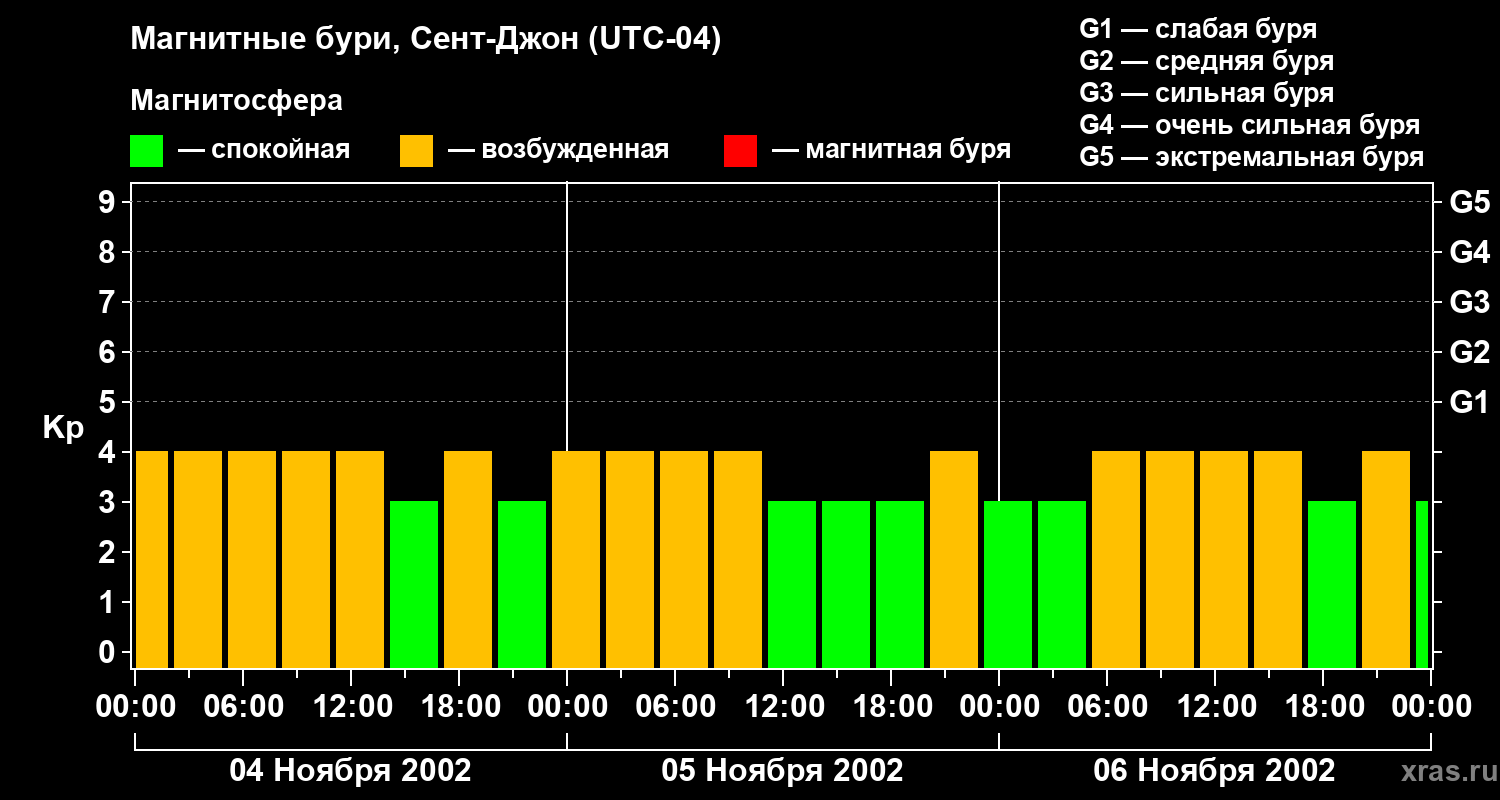 Магнитные бури в Сент-Джоне 6 ноября 2002 года