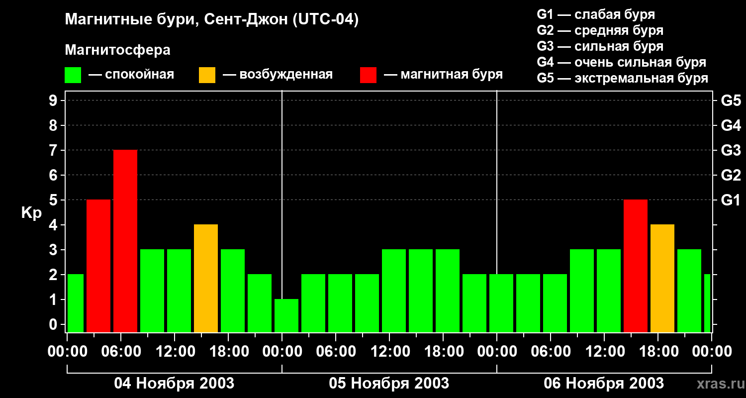 Магнитные бури в Сент-Джоне 6 ноября 2003 года