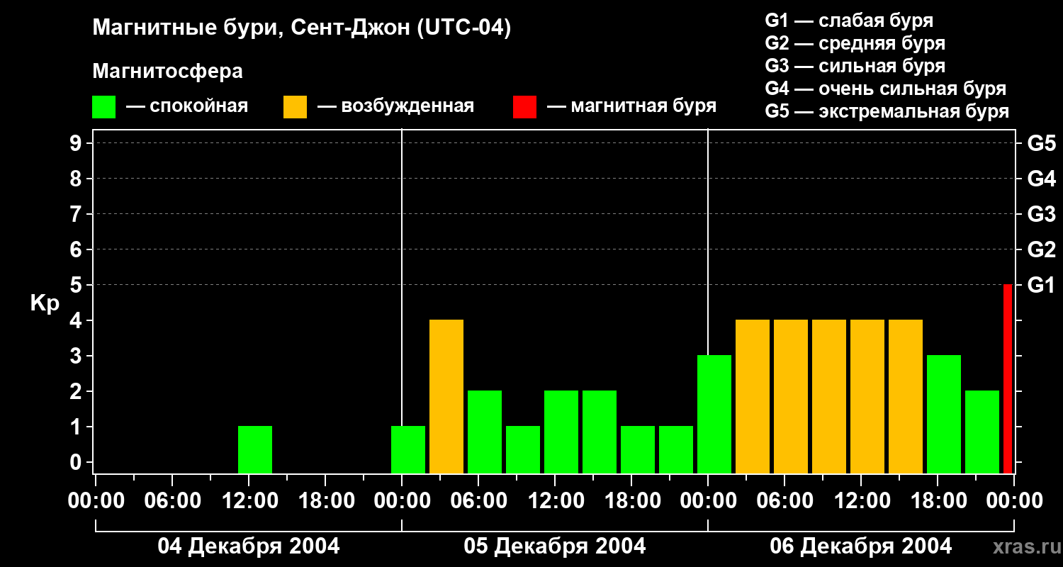 Магнитные бури в Сент-Джоне — 6 декабря 2004 года