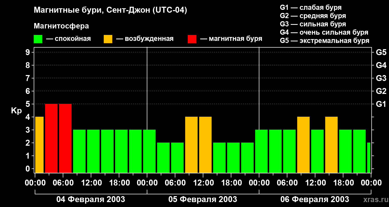 Магнитные бури в Сент-Джоне — 6 февраля 2003 года