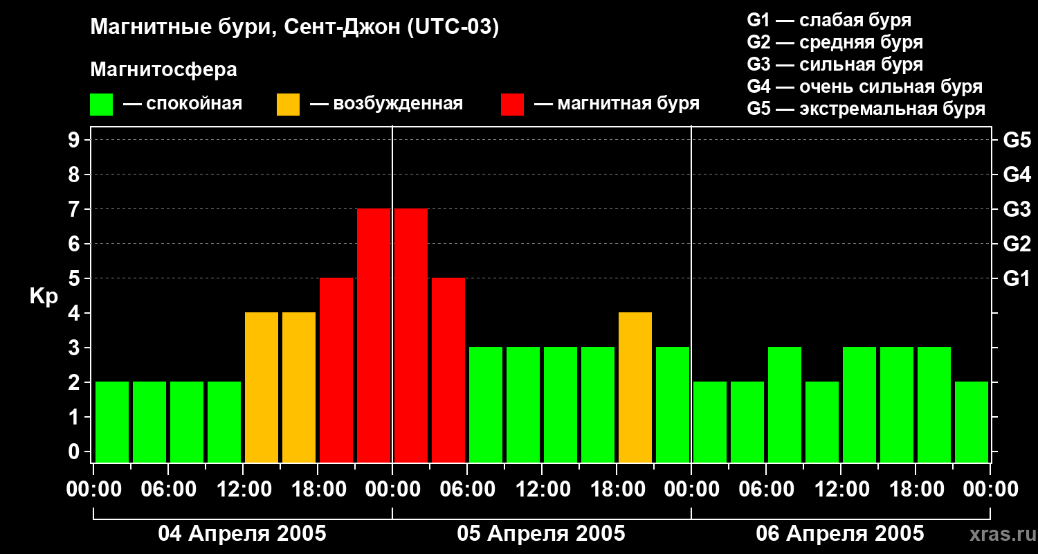 Магнитные бури в Сент-Джоне в апреле 2005 года