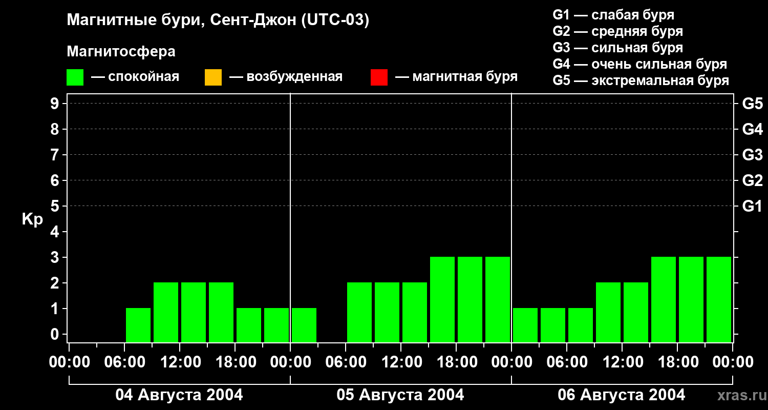Магнитные бури в Сент-Джоне в августе 2004 года