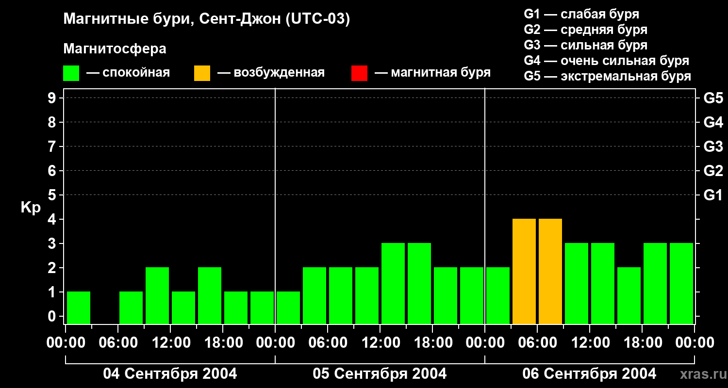 Магнитные бури в Сент-Джоне 6 сентября 2004 года