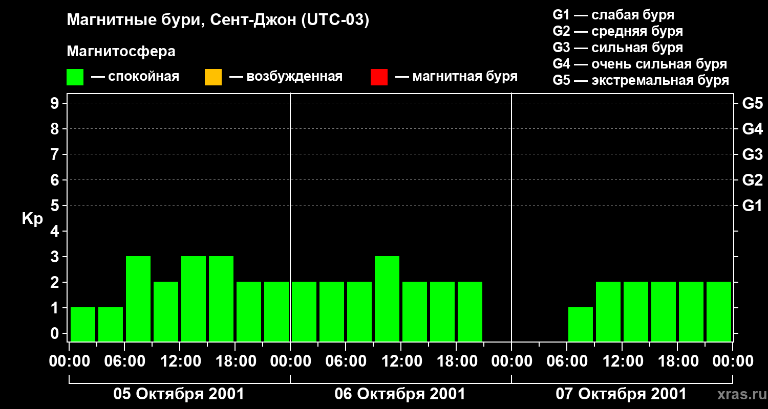 Магнитные бури в Сент-Джоне — 7 октября 2001 года