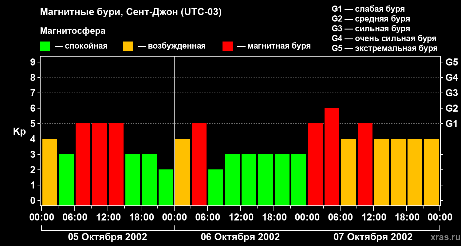 Магнитные бури в Сент-Джоне — 7 октября 2002 года