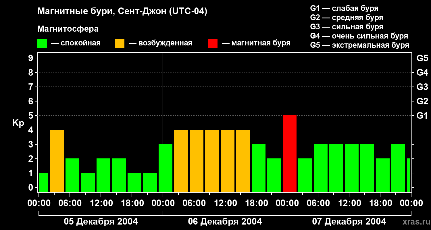 Магнитные бури в Сент-Джоне — 7 декабря 2004 года