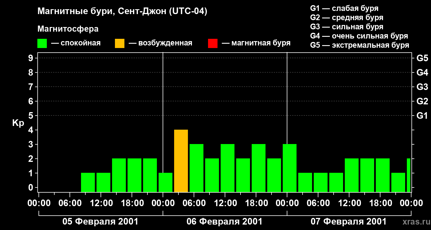 Магнитные бури в Сент-Джоне — 7 февраля 2001 года