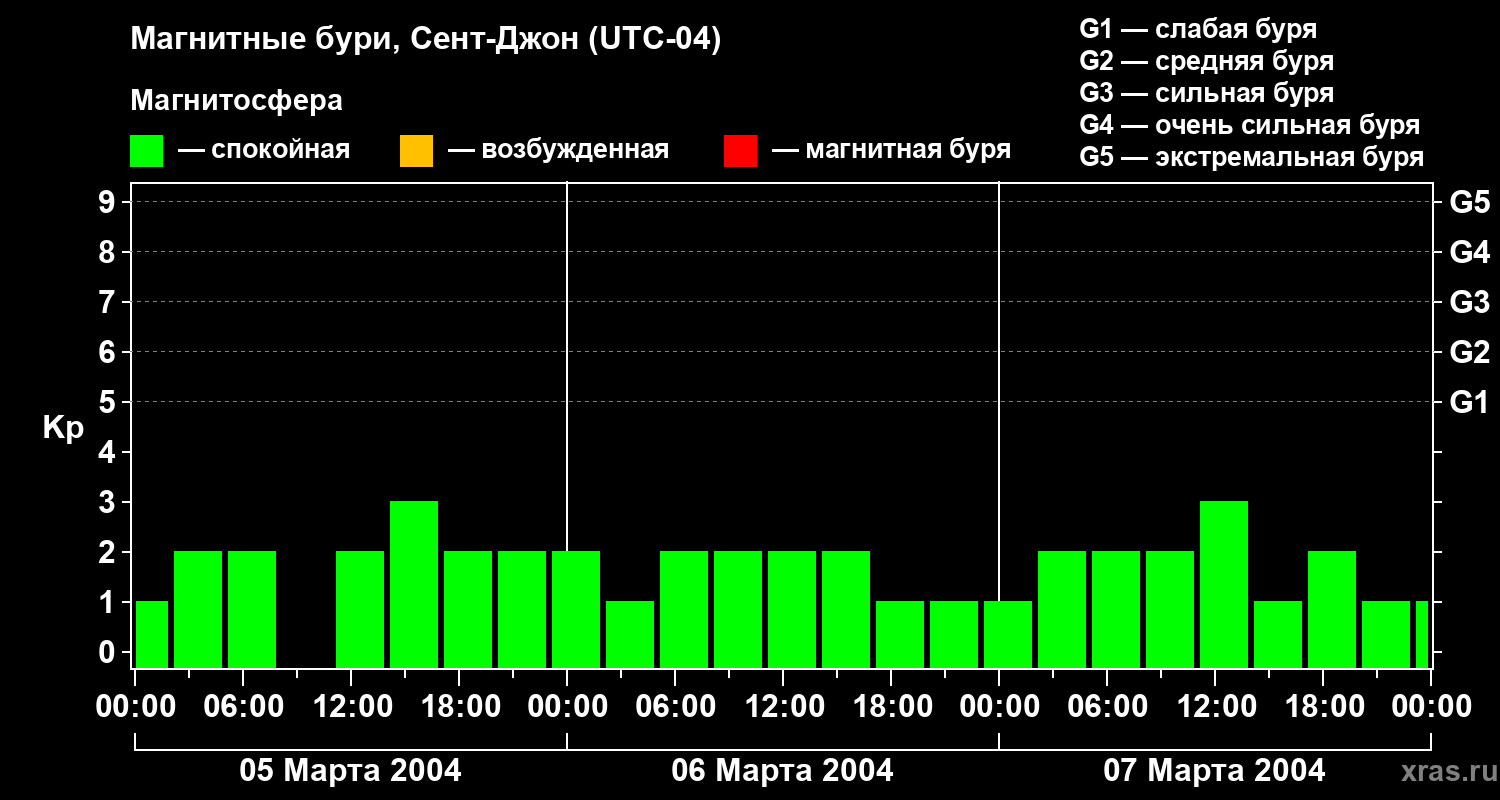Магнитные бури в Сент-Джоне 7 марта 2004 года