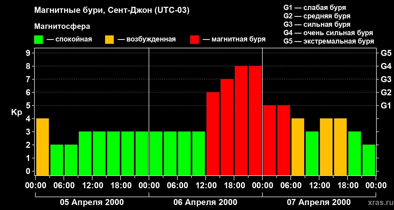 Магнитные бури в Сент-Джоне — 7 апреля 2000 года