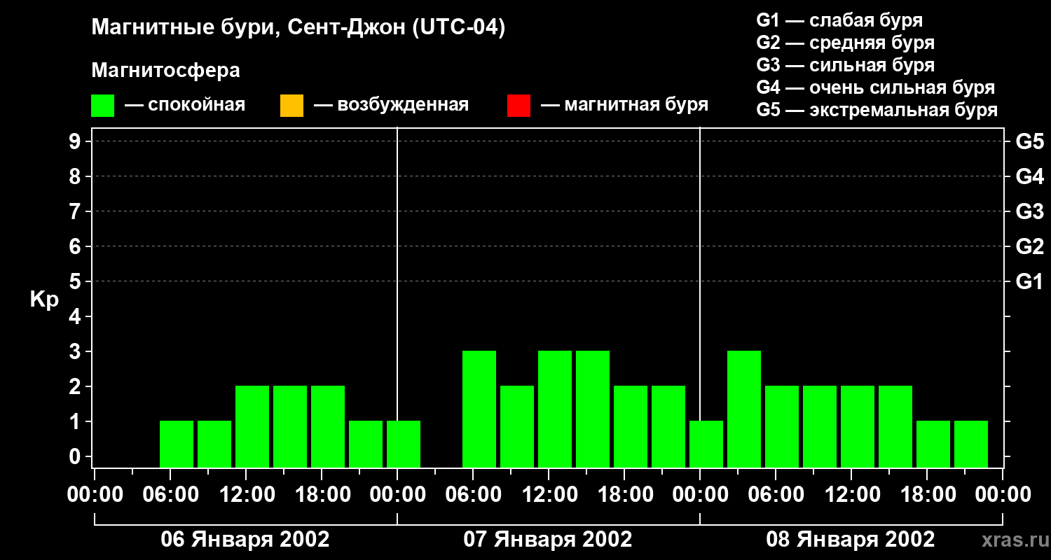Магнитные бури в Сент-Джоне 8 января 2002 года