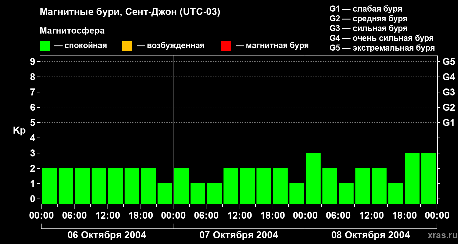 Магнитные бури в Сент-Джоне 8 октября 2004 года