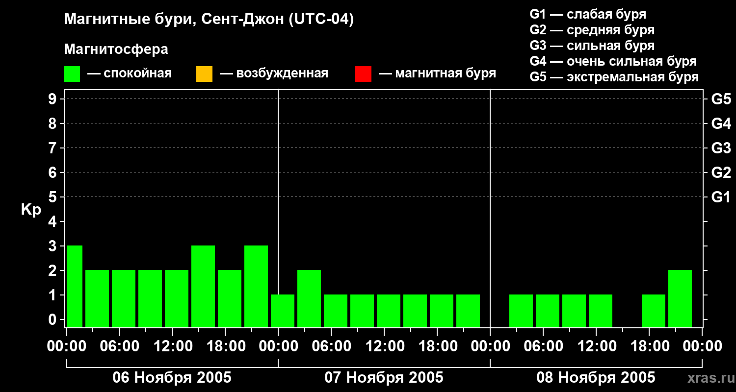 Магнитные бури в Сент-Джоне — 8 ноября 2005 года