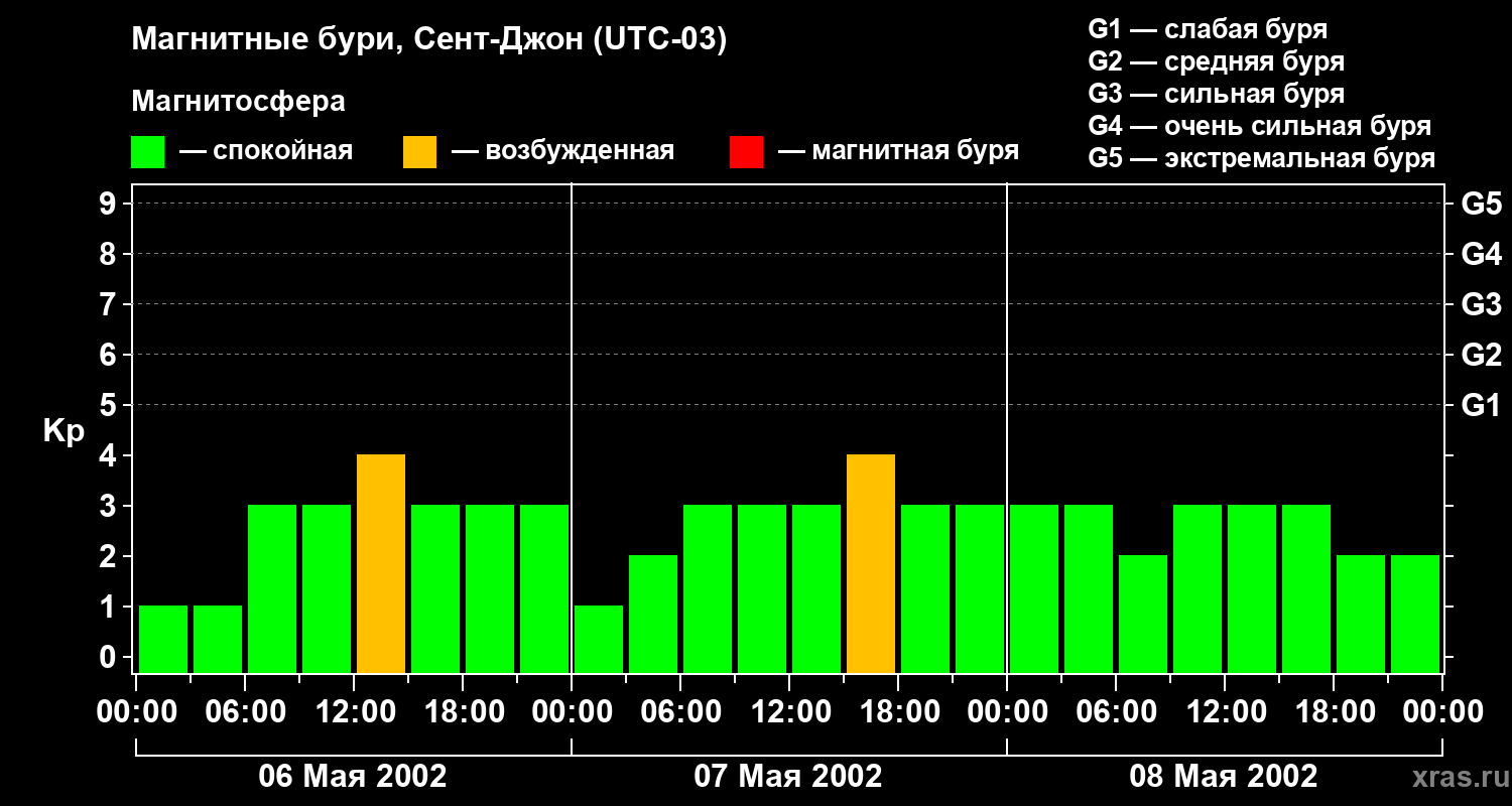 Магнитные бури в Сент-Джоне 8 мая 2002 года