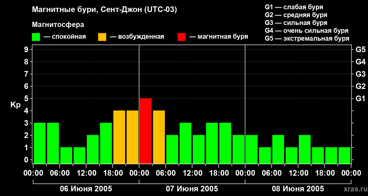Магнитные бури в Сент-Джоне 8 июня 2005 года