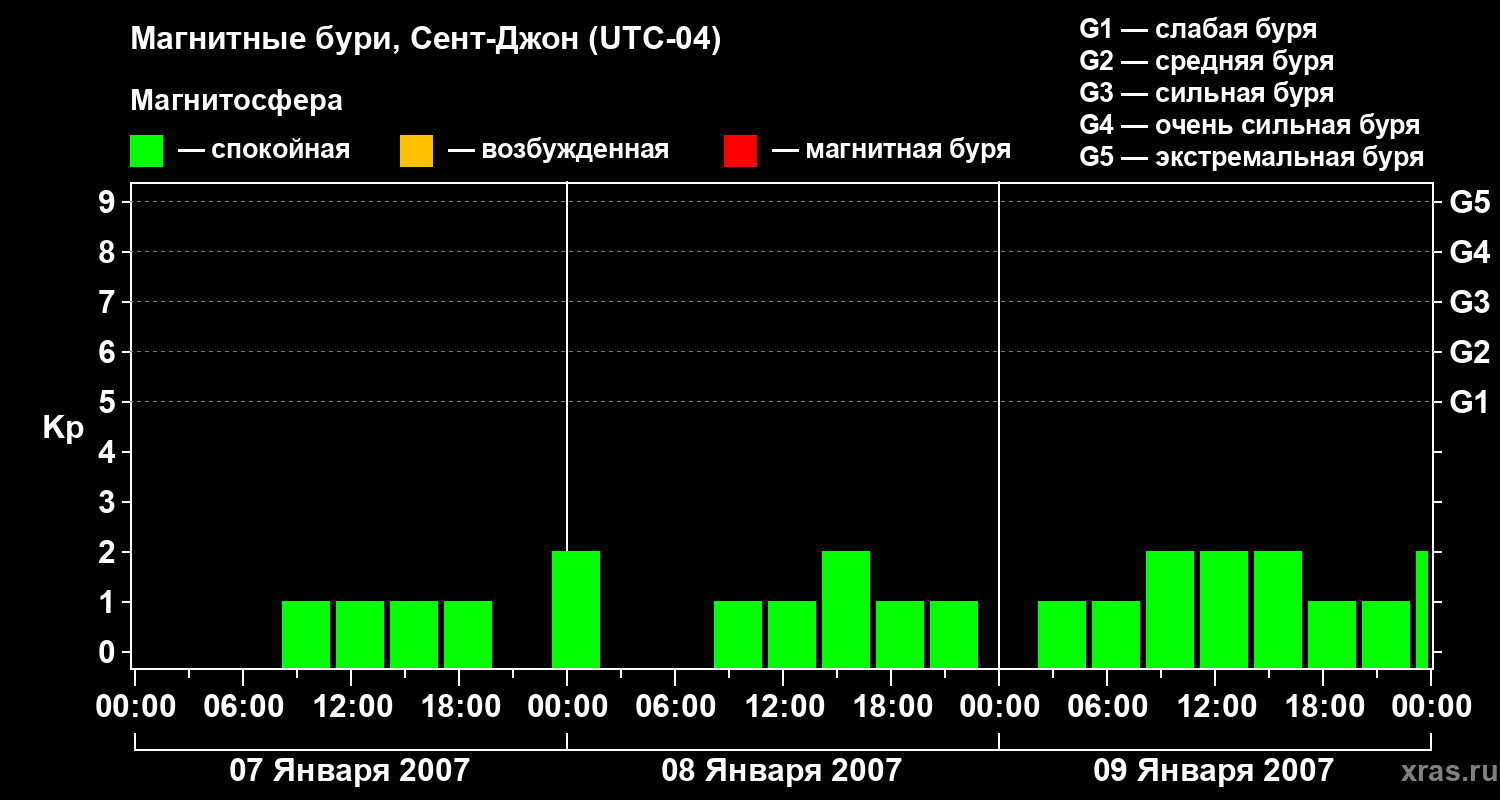 Магнитные бури в Сент-Джоне 9 января 2007 года