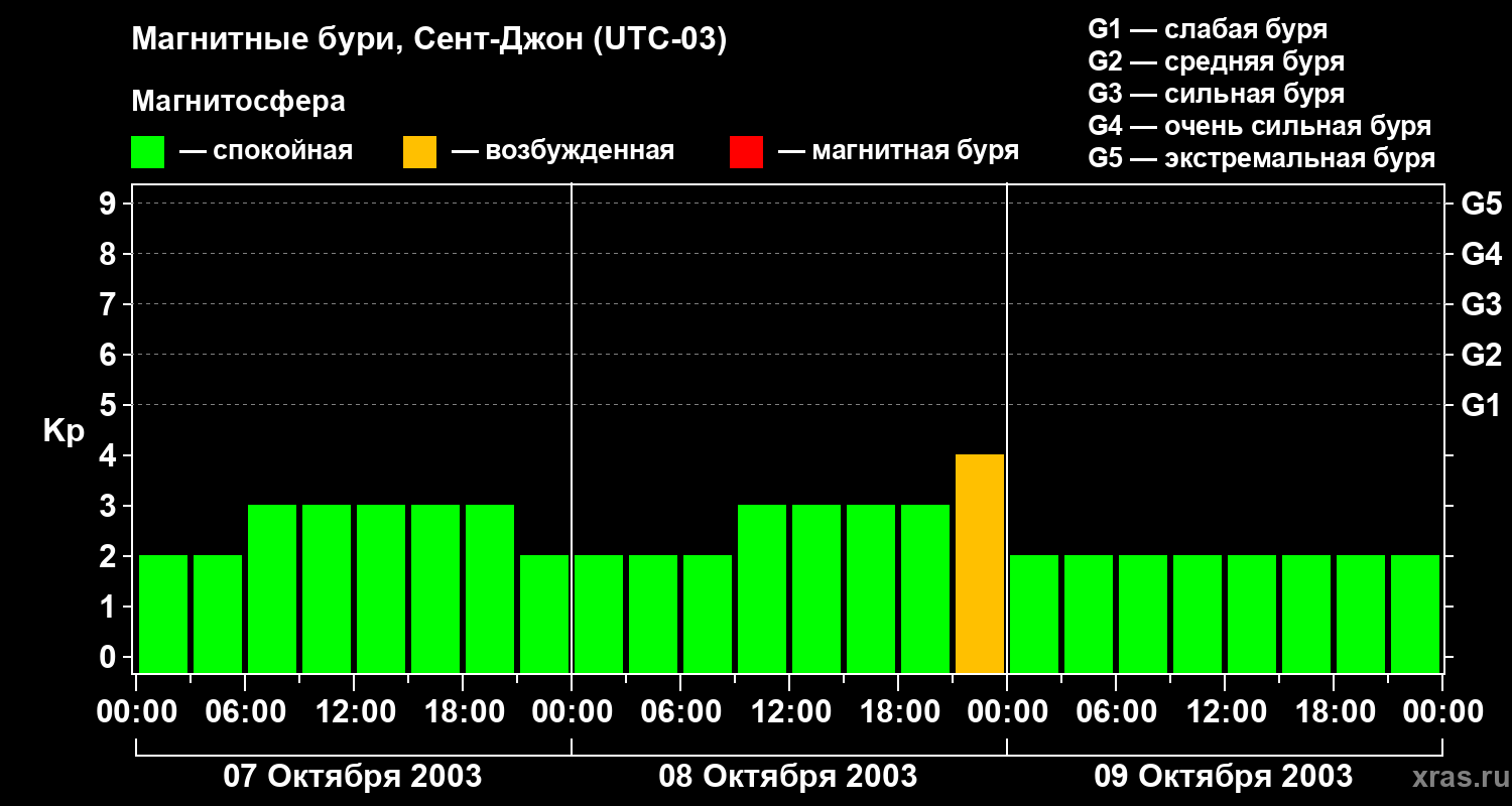 Магнитные бури в Сент-Джоне — 9 октября 2003 года