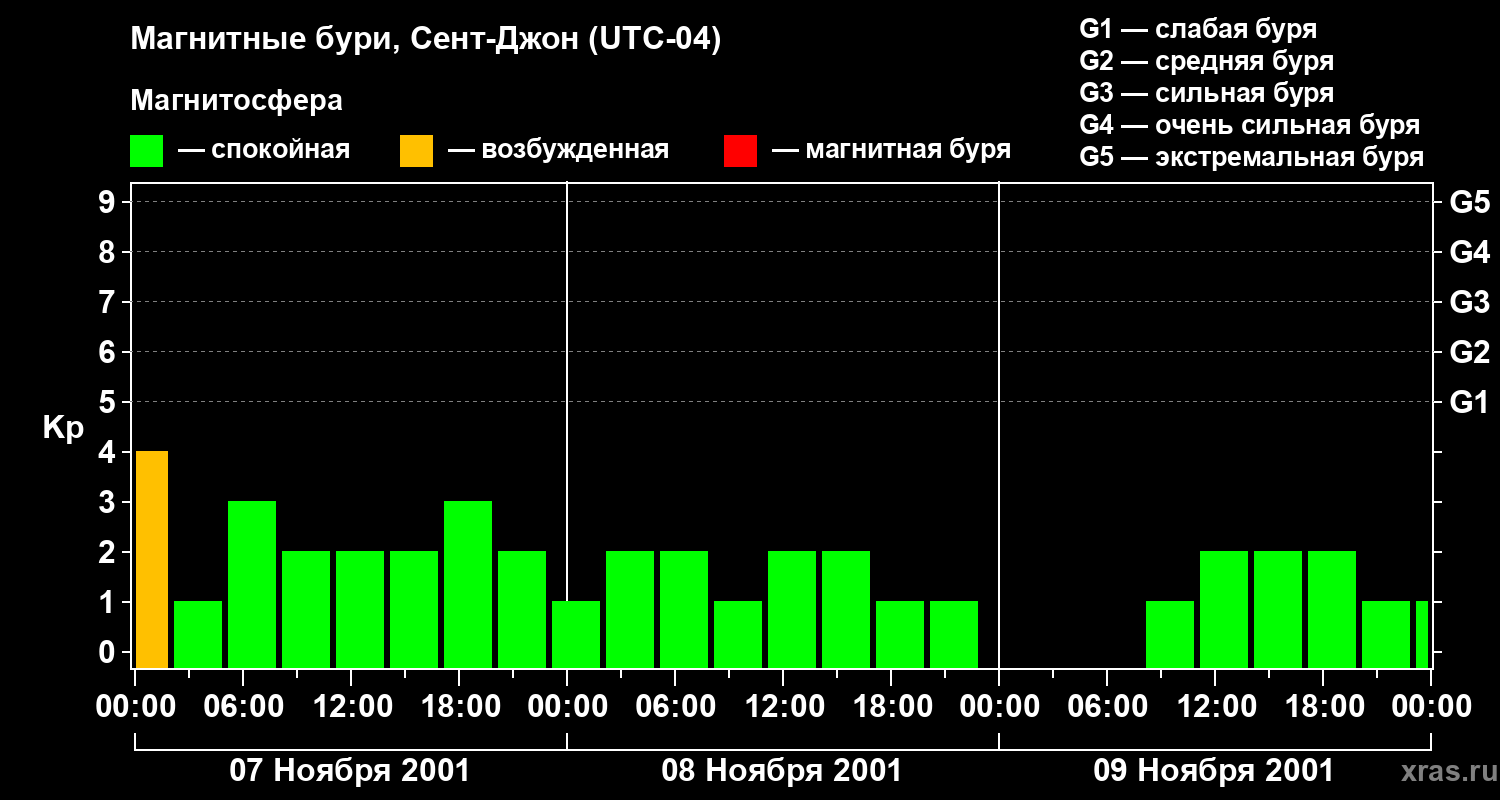 Магнитные бури в Сент-Джоне — 9 ноября 2001 года