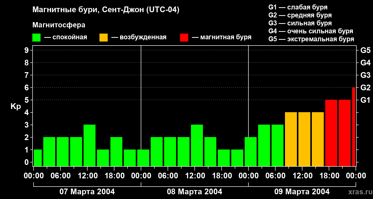 Магнитные бури в Сент-Джоне — 9 марта 2004 года