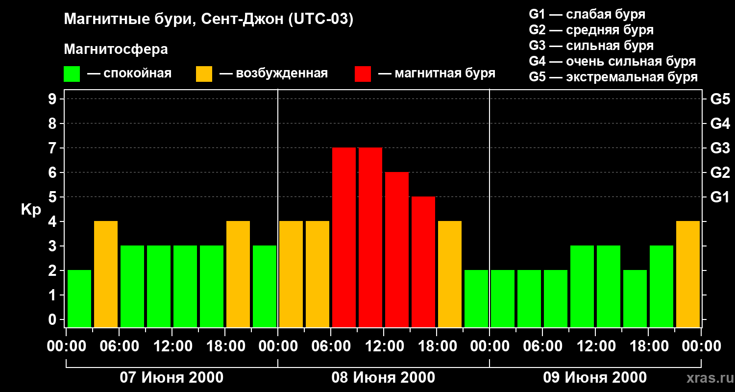 Магнитные бури в Сент-Джоне — 9 июня 2000 года