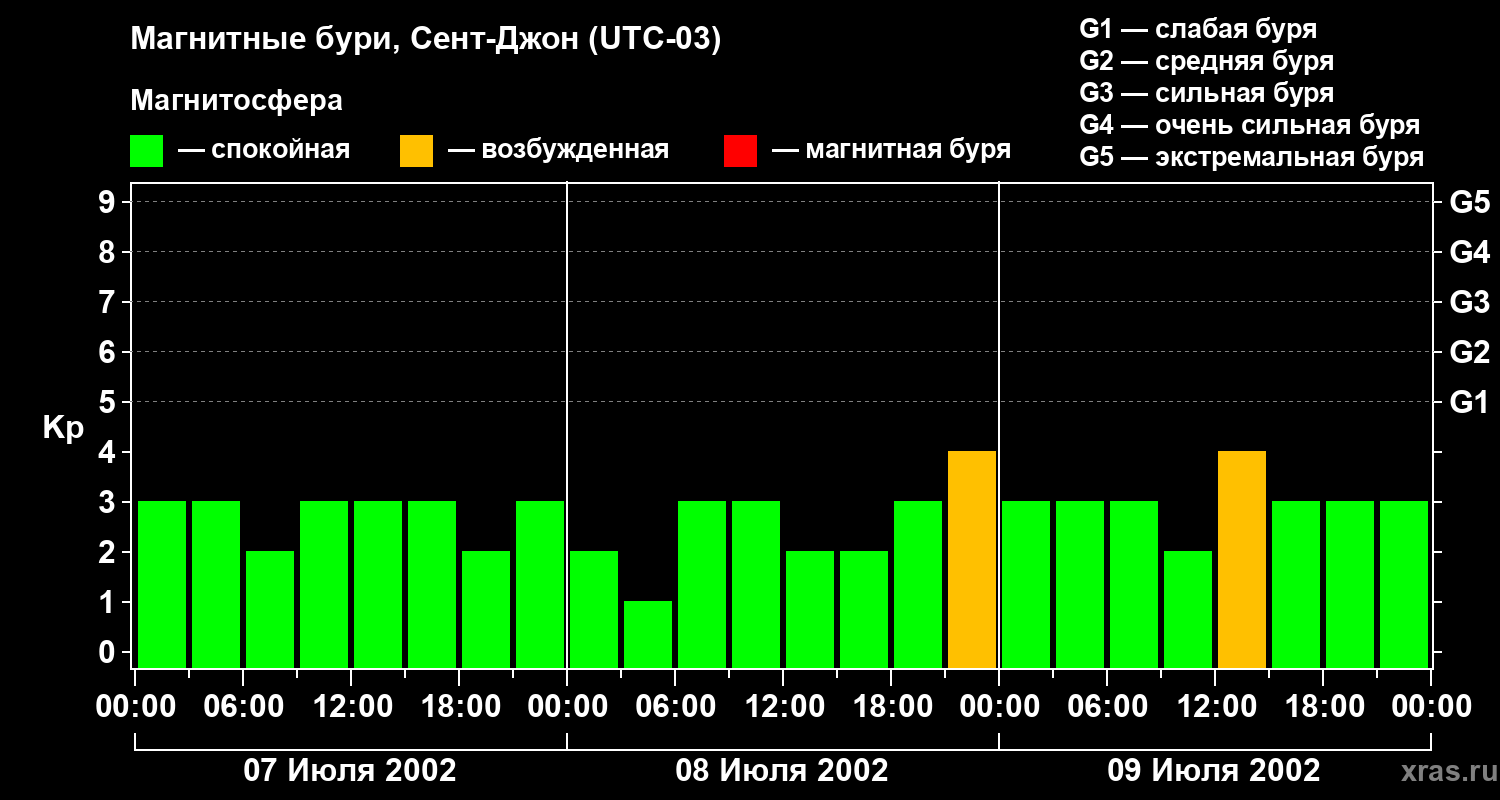 Магнитные бури в Сент-Джоне 9 июля 2002 года