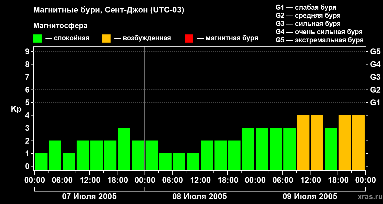 Магнитные бури в Сент-Джоне 9 июля 2005 года