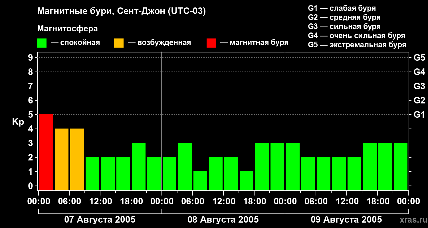Магнитные бури в Сент-Джоне — 9 августа 2005 года