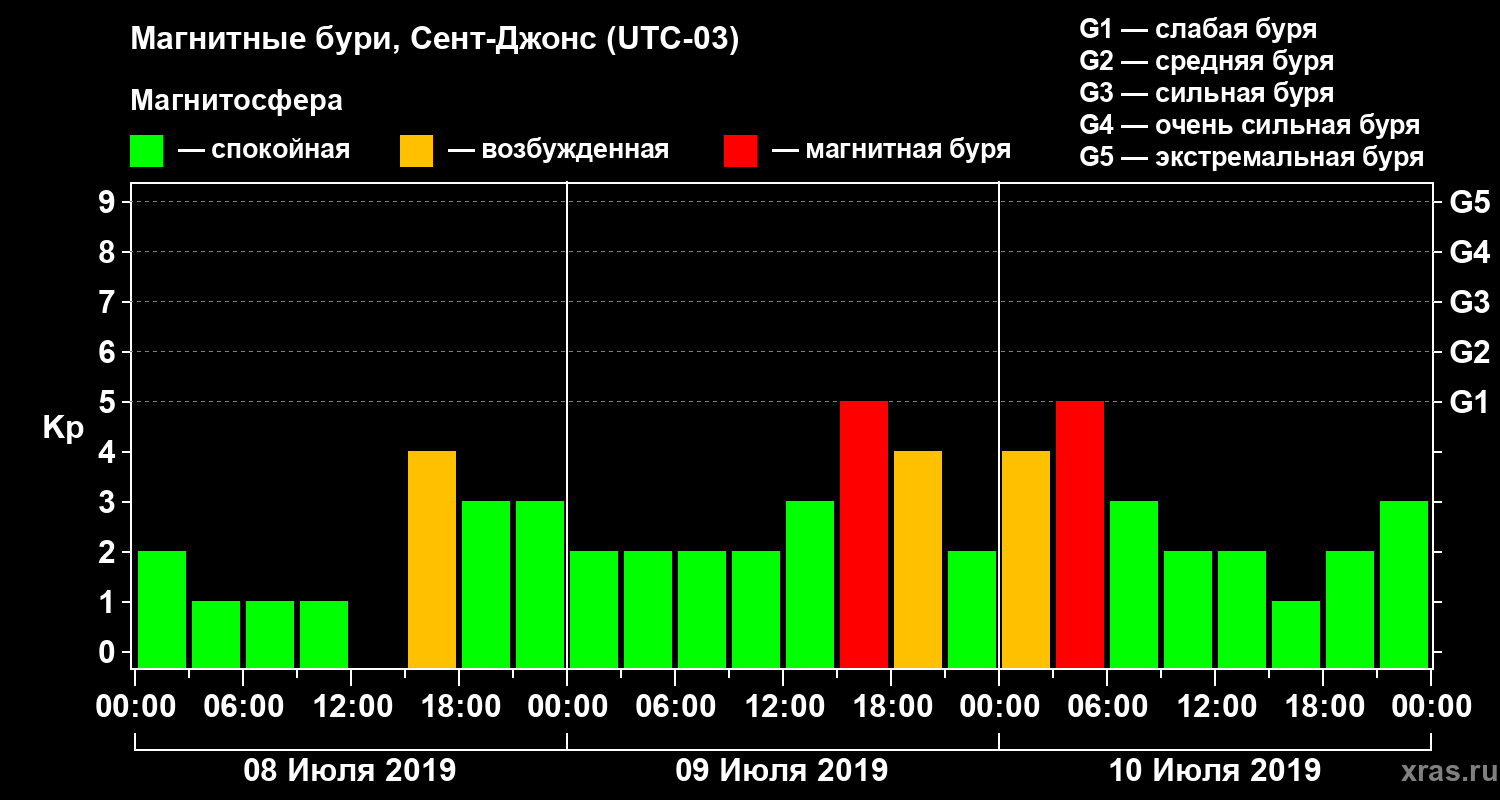 Магнитные бури в Сент-Джонсе — 10 июля 2019 года