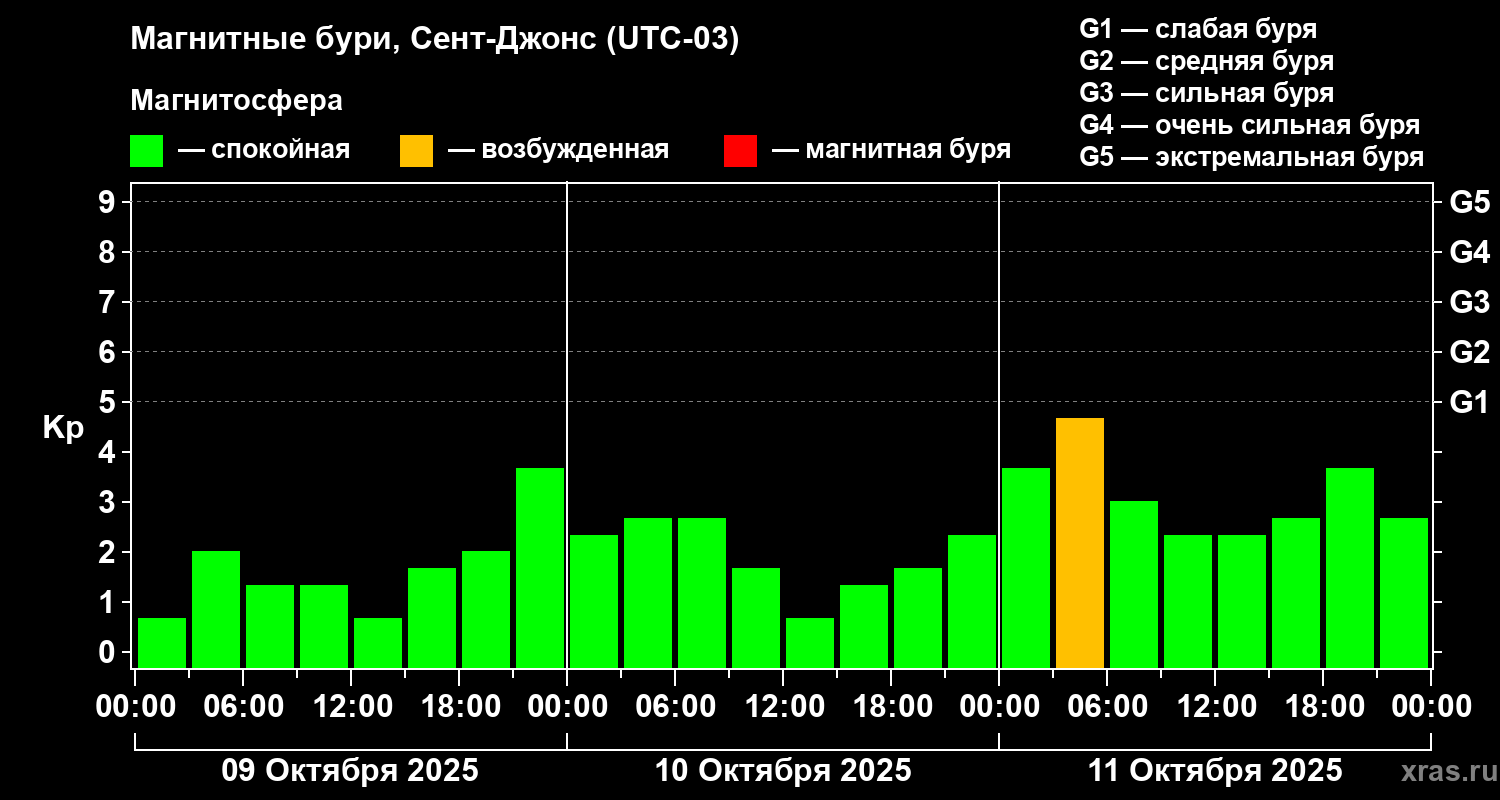 Магнитные бури в Сент-Джонсе — 11 октября 2025 года