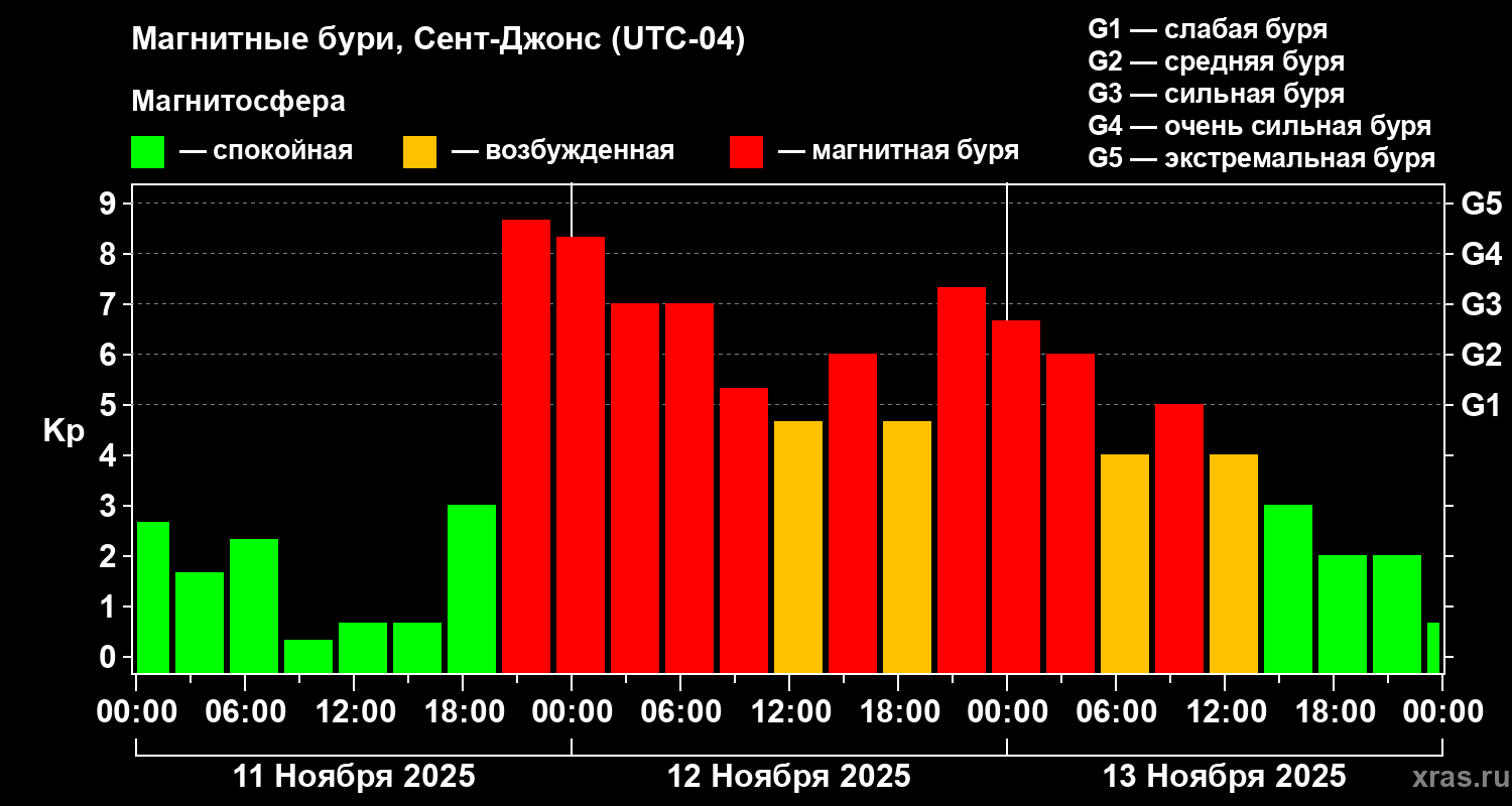 Магнитные бури в Сент-Джонсе — 13 ноября 2025 года