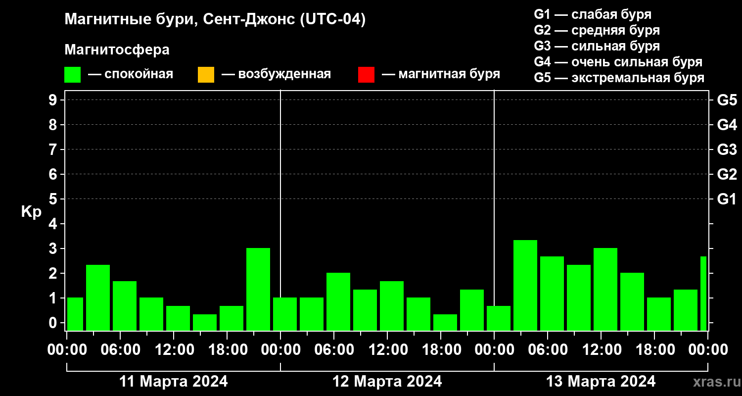 Магнитные бури в Сент-Джонсе — 13 марта 2024 года