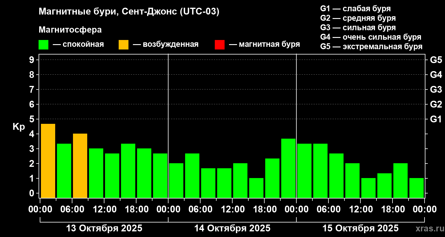 Магнитные бури в Сент-Джонсе — 15 октября 2025 года