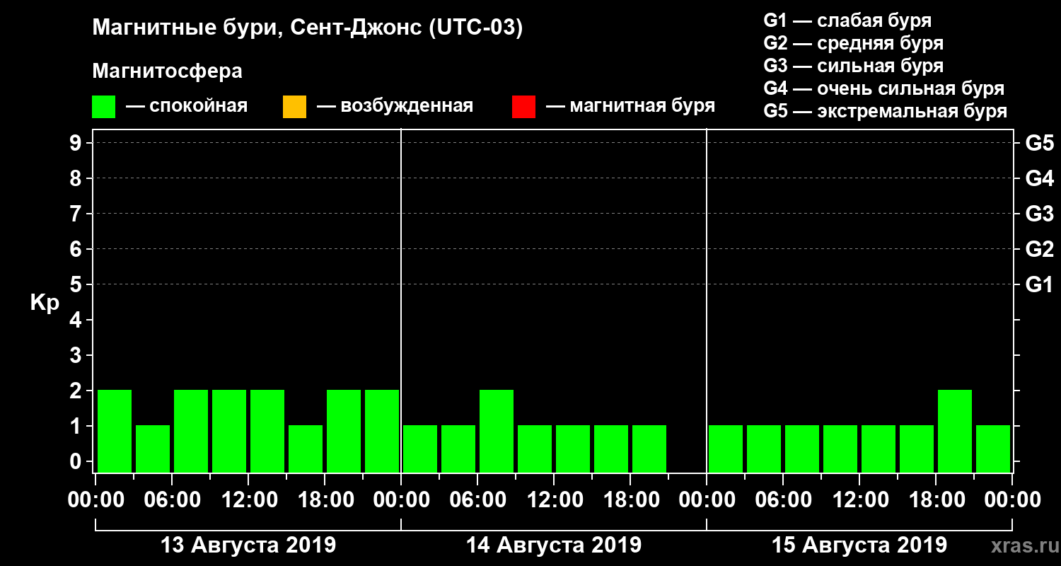Магнитные бури в Сент-Джонсе — 15 августа 2019 года
