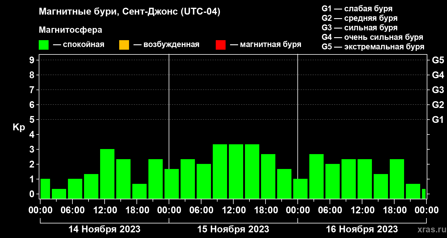 Магнитные бури в Сент-Джонсе — 16 ноября 2023 года