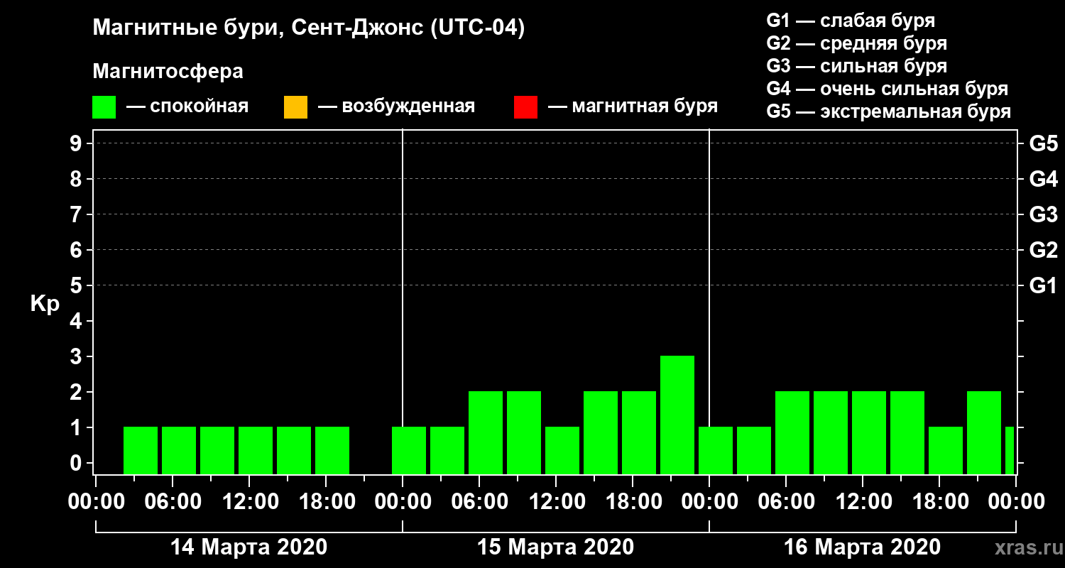 Магнитные бури в Сент-Джонсе — 16 марта 2020 года