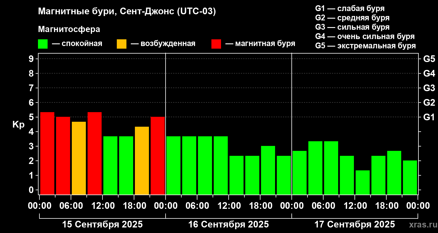 Магнитные бури в Сент-Джонсе — 17 сентября 2025 года