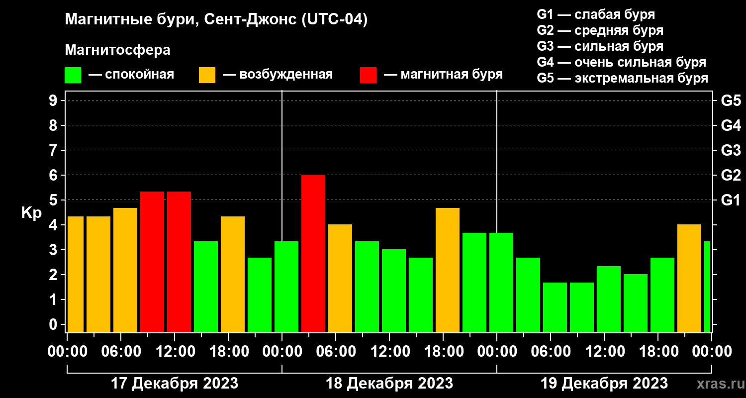 Магнитные бури в Сент-Джонсе — 19 декабря 2023 года