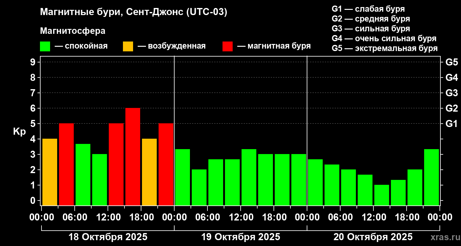 Магнитные бури в Сент-Джонсе — 20 октября 2025 года