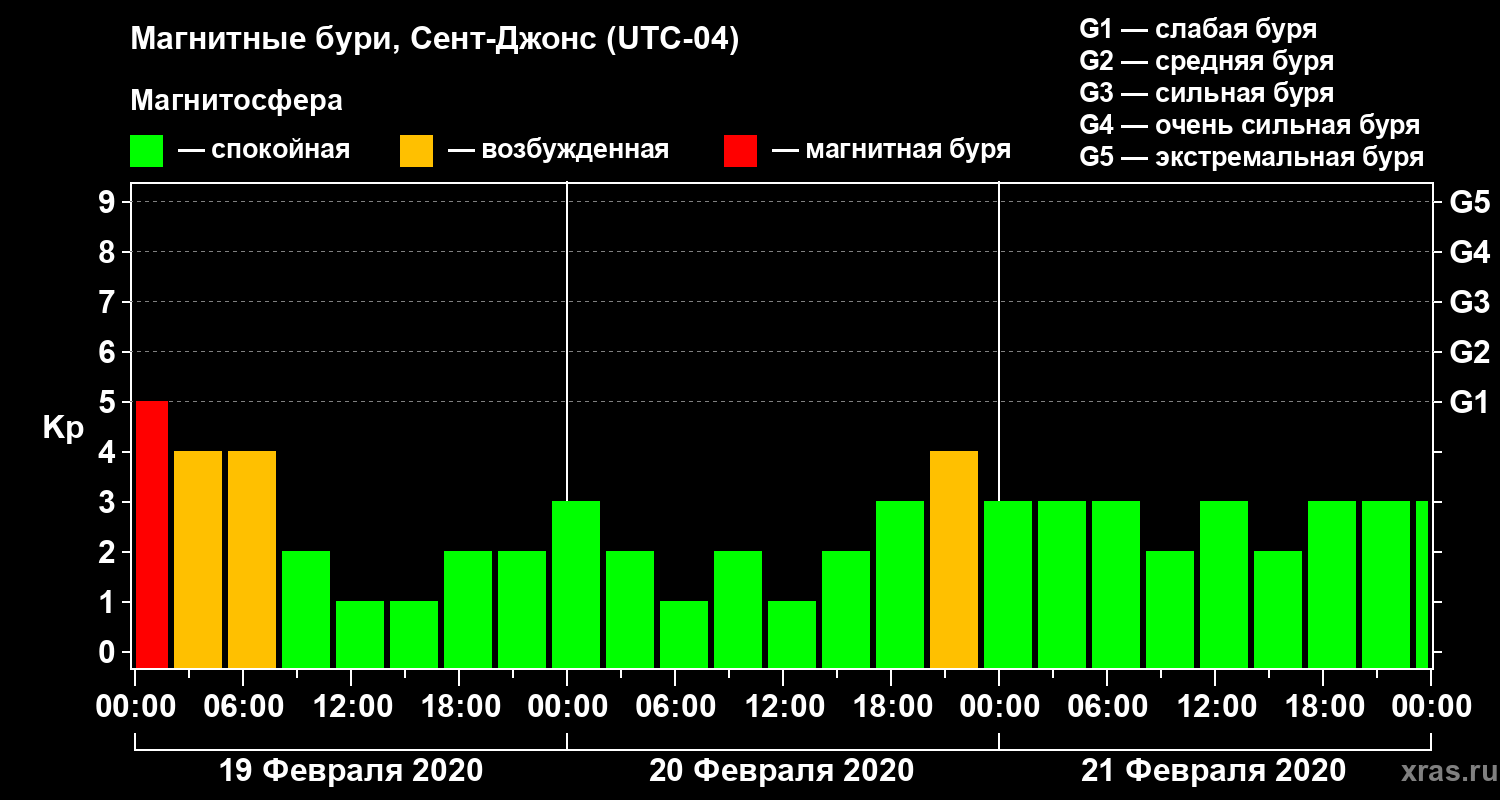 Магнитные бури в Сент-Джонсе — 21 февраля 2020 года