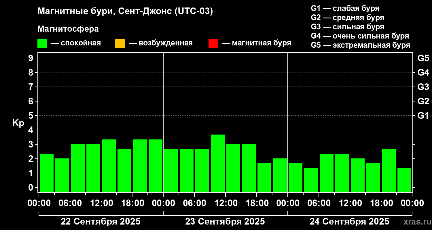 Магнитные бури в Сент-Джонсе 24 сентября 2025 года