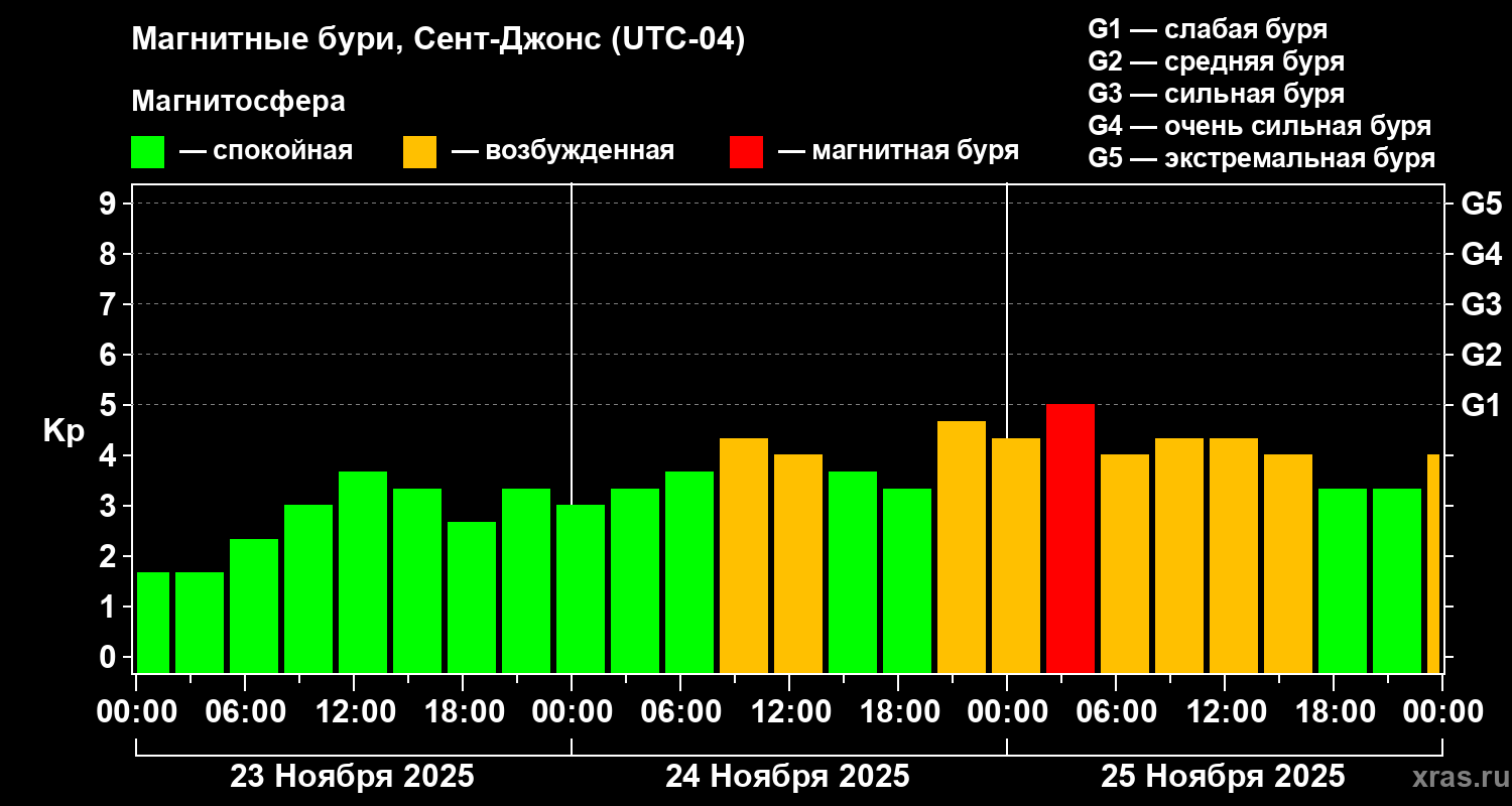 Магнитные бури в Сент-Джонсе 25 ноября 2025 года