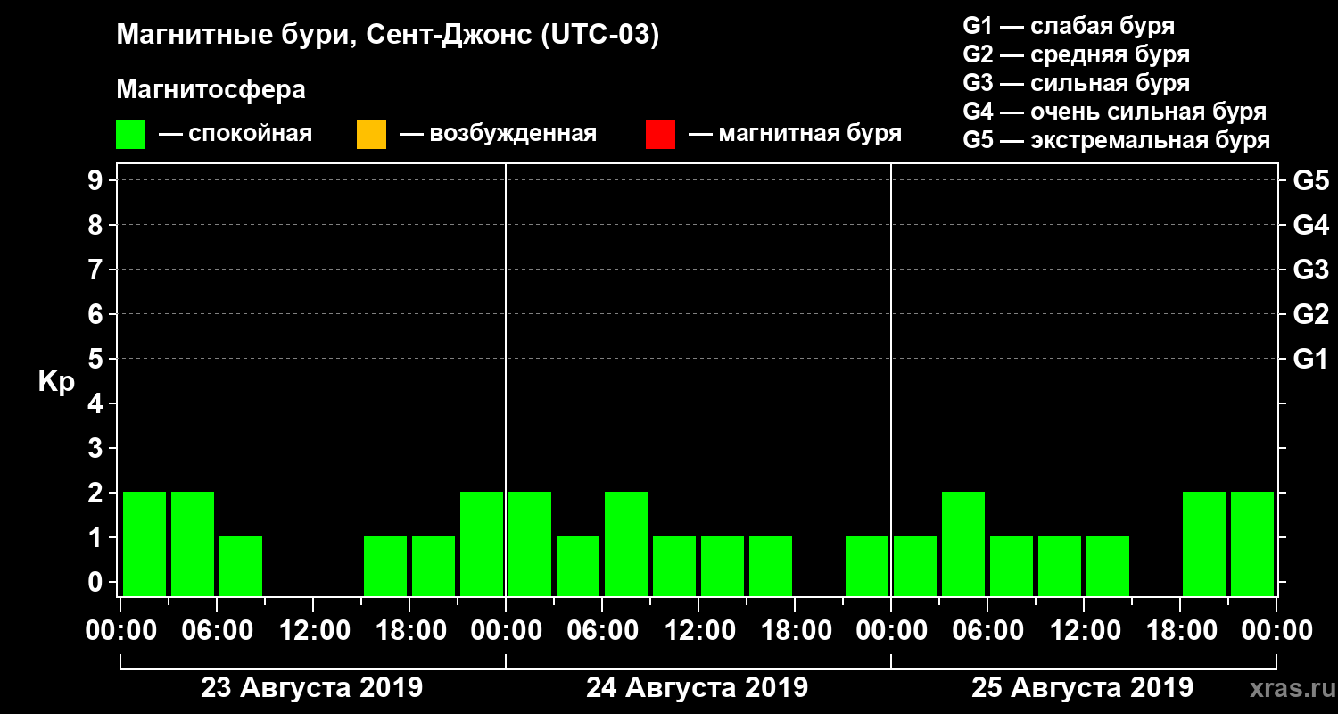 Магнитные бури в Сент-Джонсе 25 августа 2019 года