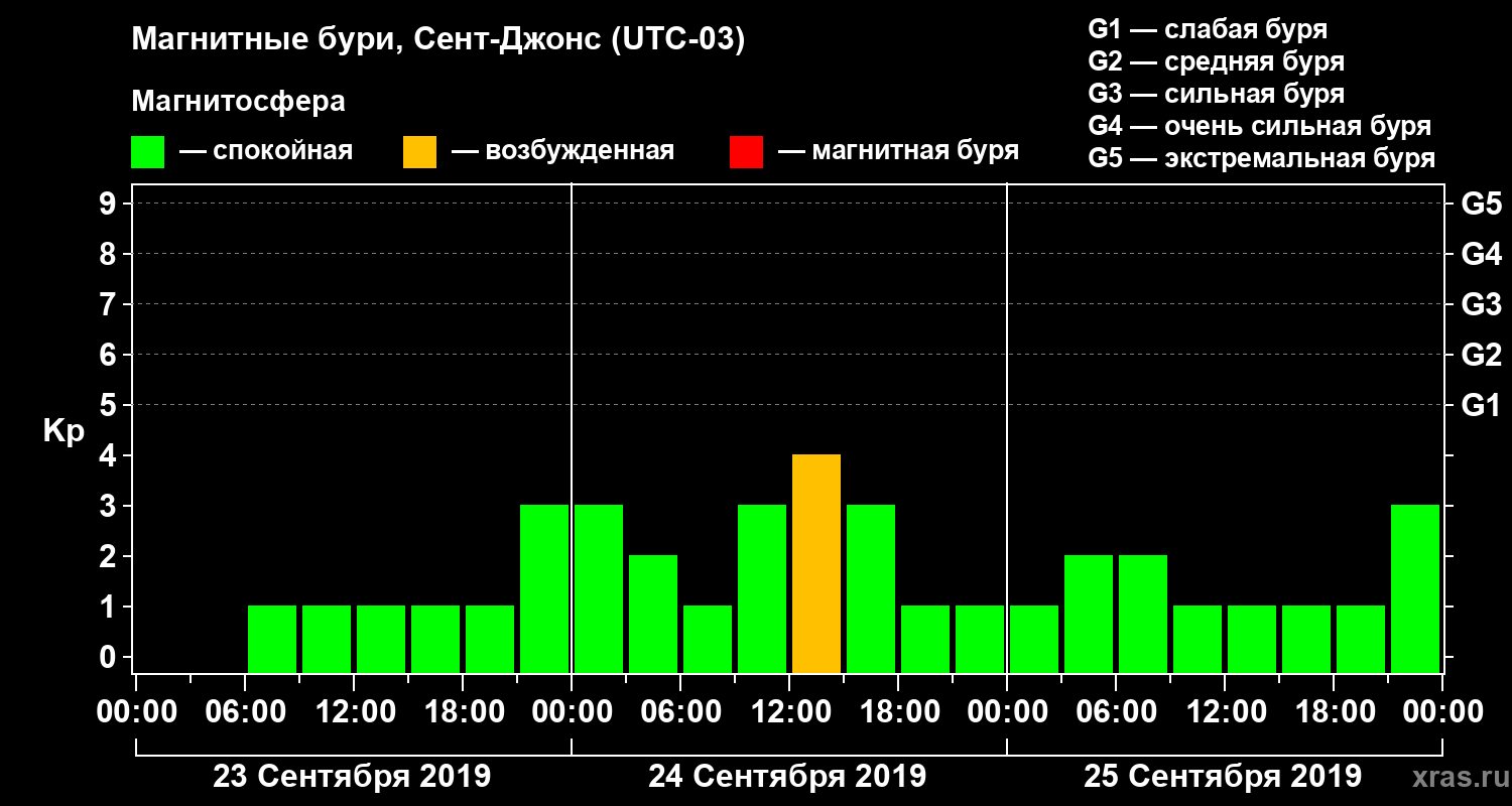 Магнитные бури в Сент-Джонсе — 25 сентября 2019 года