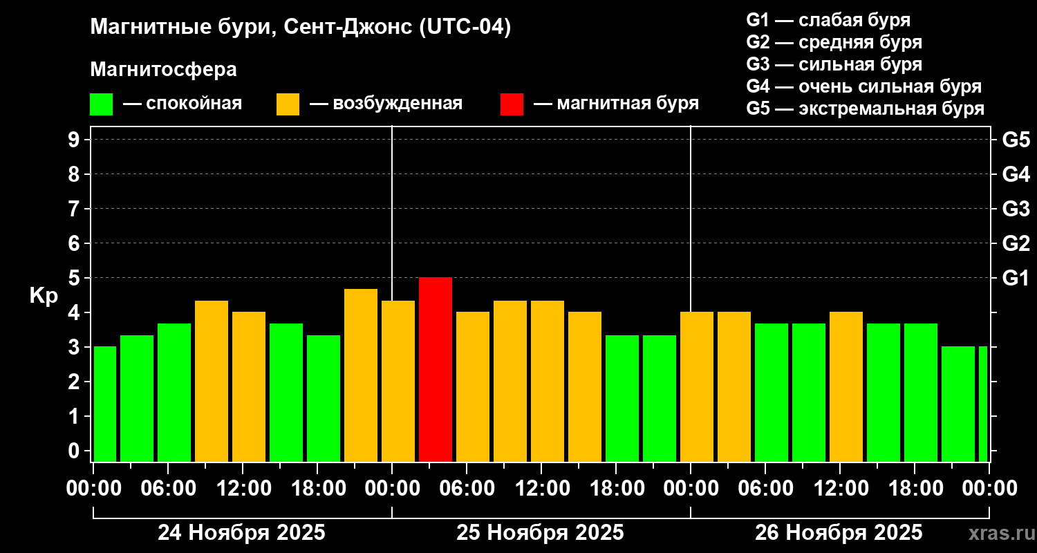 Магнитные бури в Сент-Джонсе — 26 ноября 2025 года