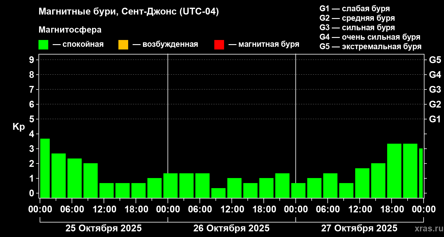 Магнитные бури в Сент-Джонсе — 27 октября 2025 года