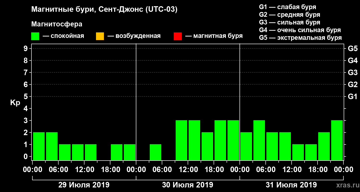 Магнитные бури в Сент-Джонсе — 31 июля 2019 года