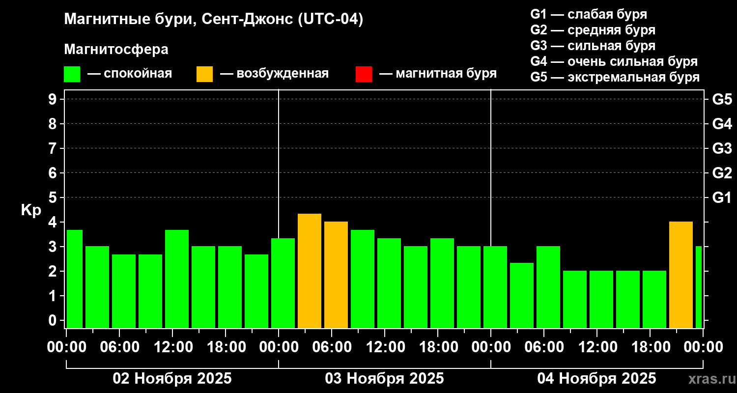 Магнитные бури в Сент-Джонсе — 4 ноября 2025 года