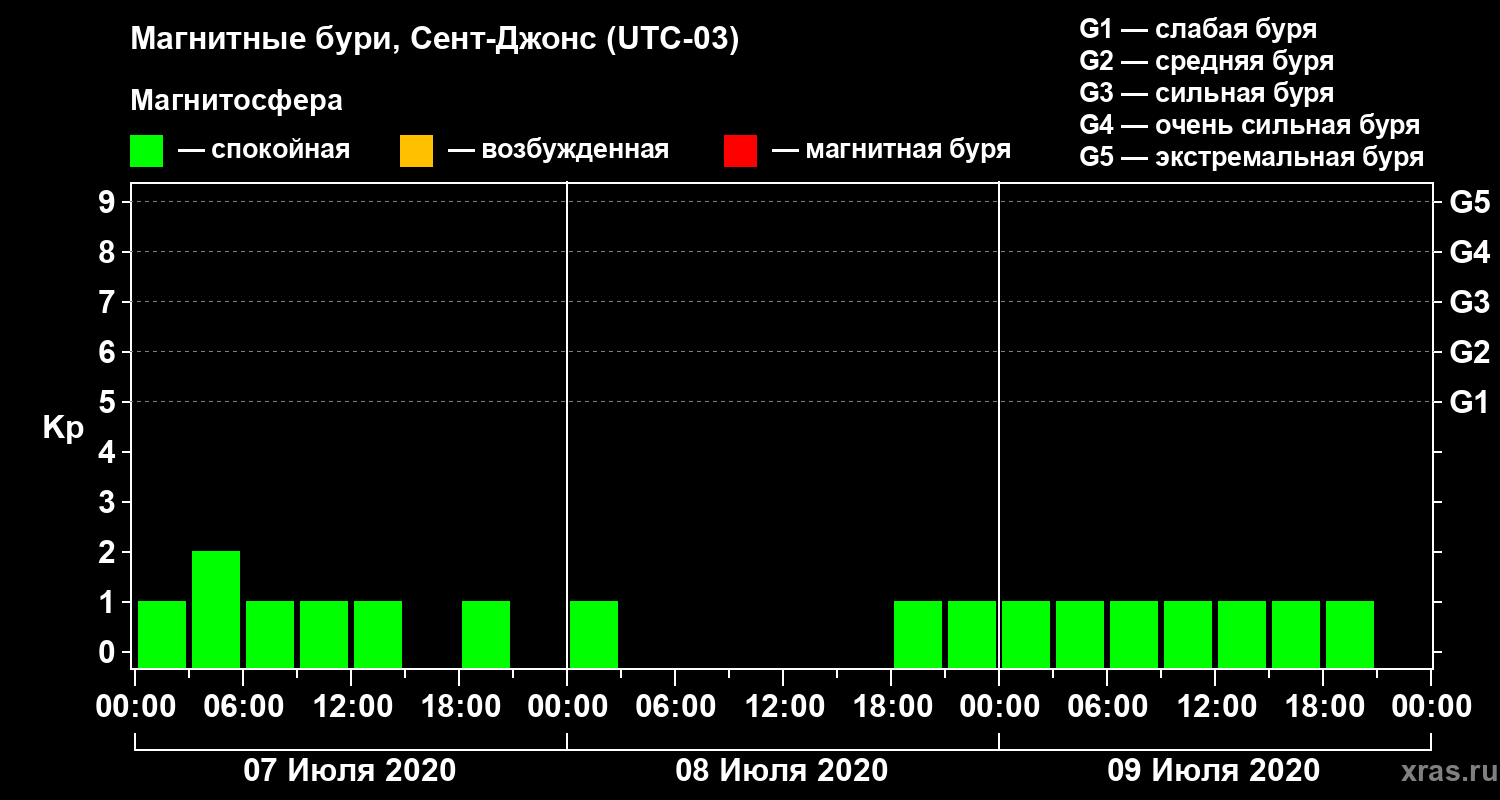 Магнитные бури в Сент-Джонсе — 9 июля 2020 года